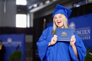CUTLINE: 2025 Co-Lin graduate Heidi Zimmerman of Magee shows off her diploma during fall commencement exercises held recently in Mullen Gym. Photo by Scarlett Hart.